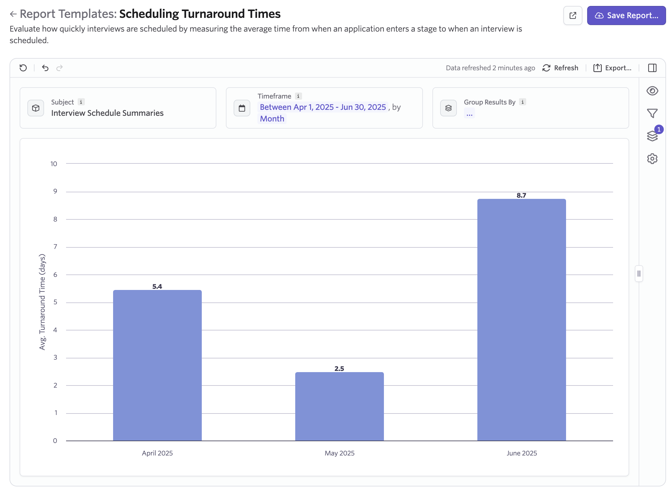 Our new Advanced Scheduling Metrics give your team a clearer view of how interviews are scheduled and managed. With deeper insights and flexible reporting, you can spot inefficiencies, balance workloads, and create a smoother experience for both candidates and interviewers.