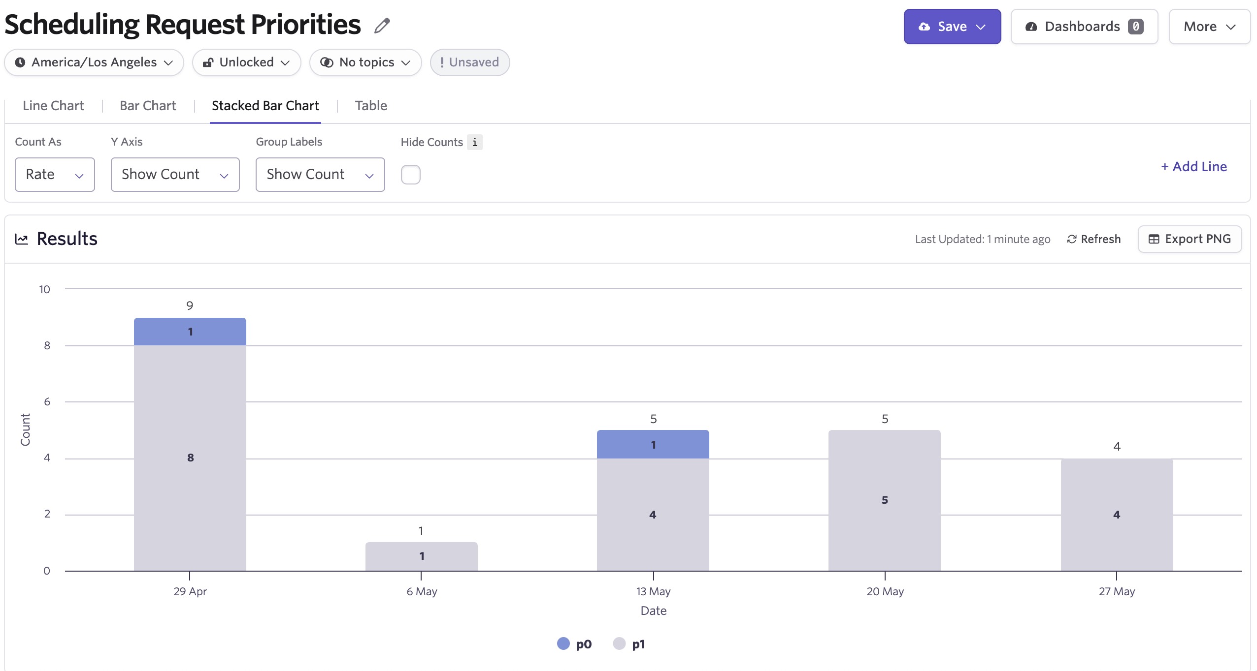 Use these insights to see how scheduling requests change over time, a breakdown by request priority, and how requests are distributed across coordinators. This helps you balance workloads, manage priorities, and understand overall scheduling demand.
