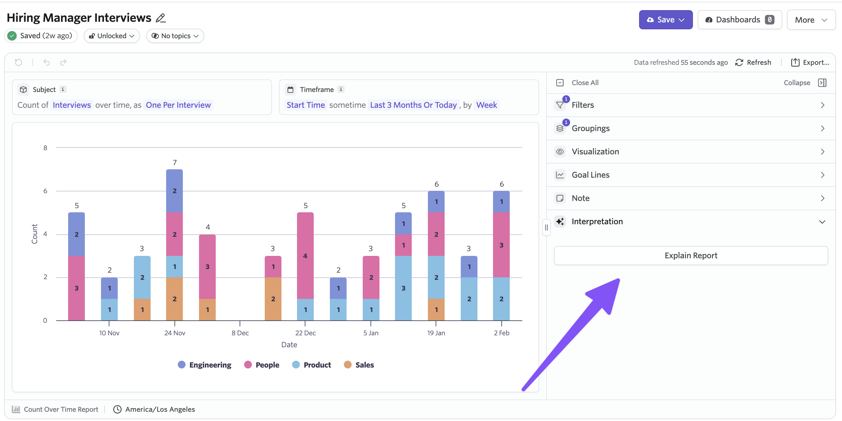 Open your reports and look for the "Explain Report" button in the interpretation panel, or try it from any report tile on a dashboard. You can learn more about this feature by heading to our knowledge base article or by booking a demo to see it in action.
