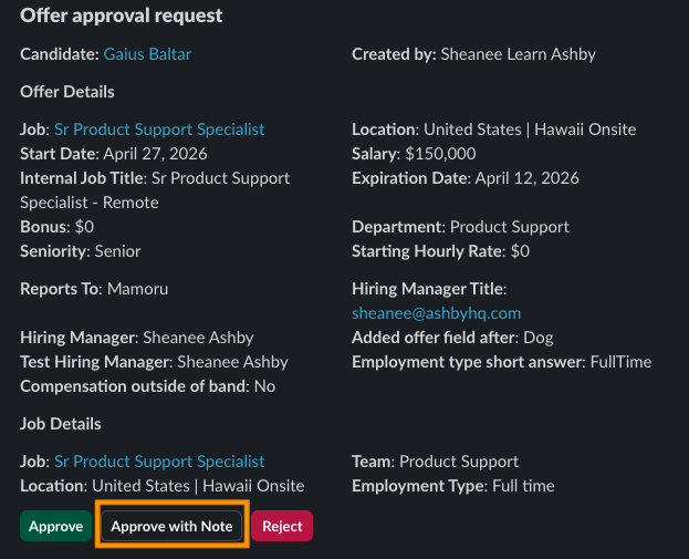 A new "Approve with Note" button will also appear in Slack notifications for approval requests.