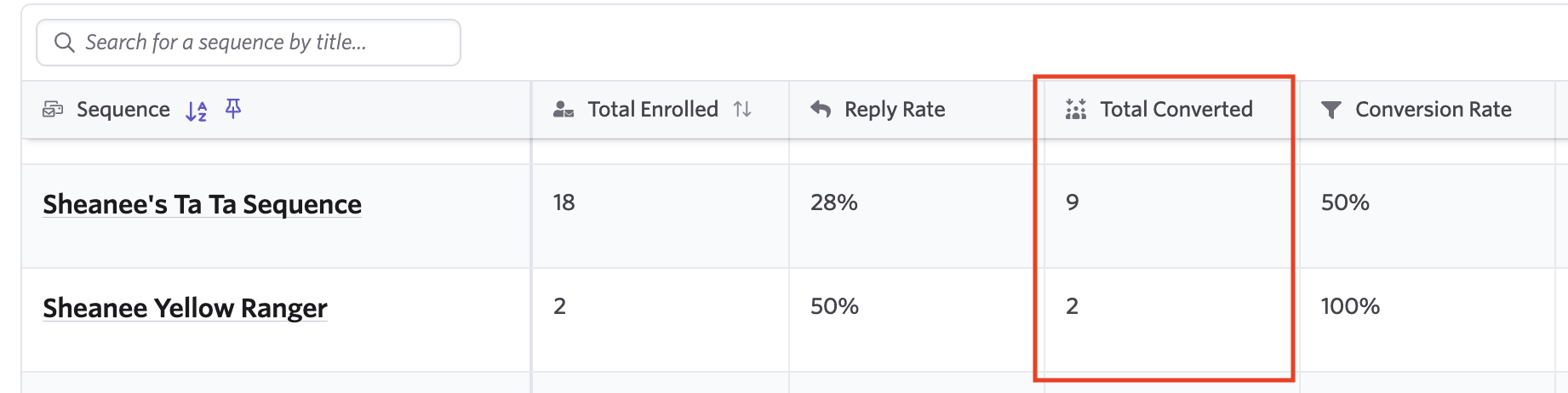 In addition to displaying the number of candidates converted and sequence conversion rates on an individual sequence's overview page, we now display this on the Sequences page. This update allows you to compare sequence data across all sequences.