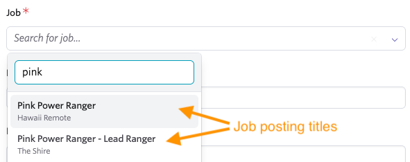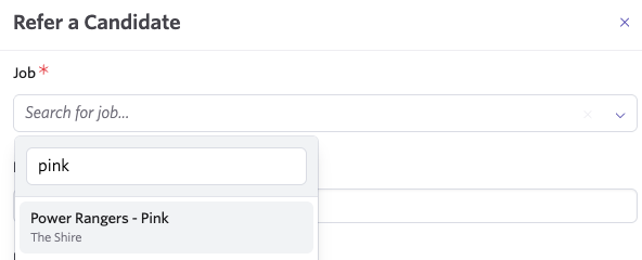 When submitting a direct referral, the Job field will now show job posting titles when available. If the job posting title isn't available (for example, if the job posting is unlisted or unpublished), the job field will show the job title.