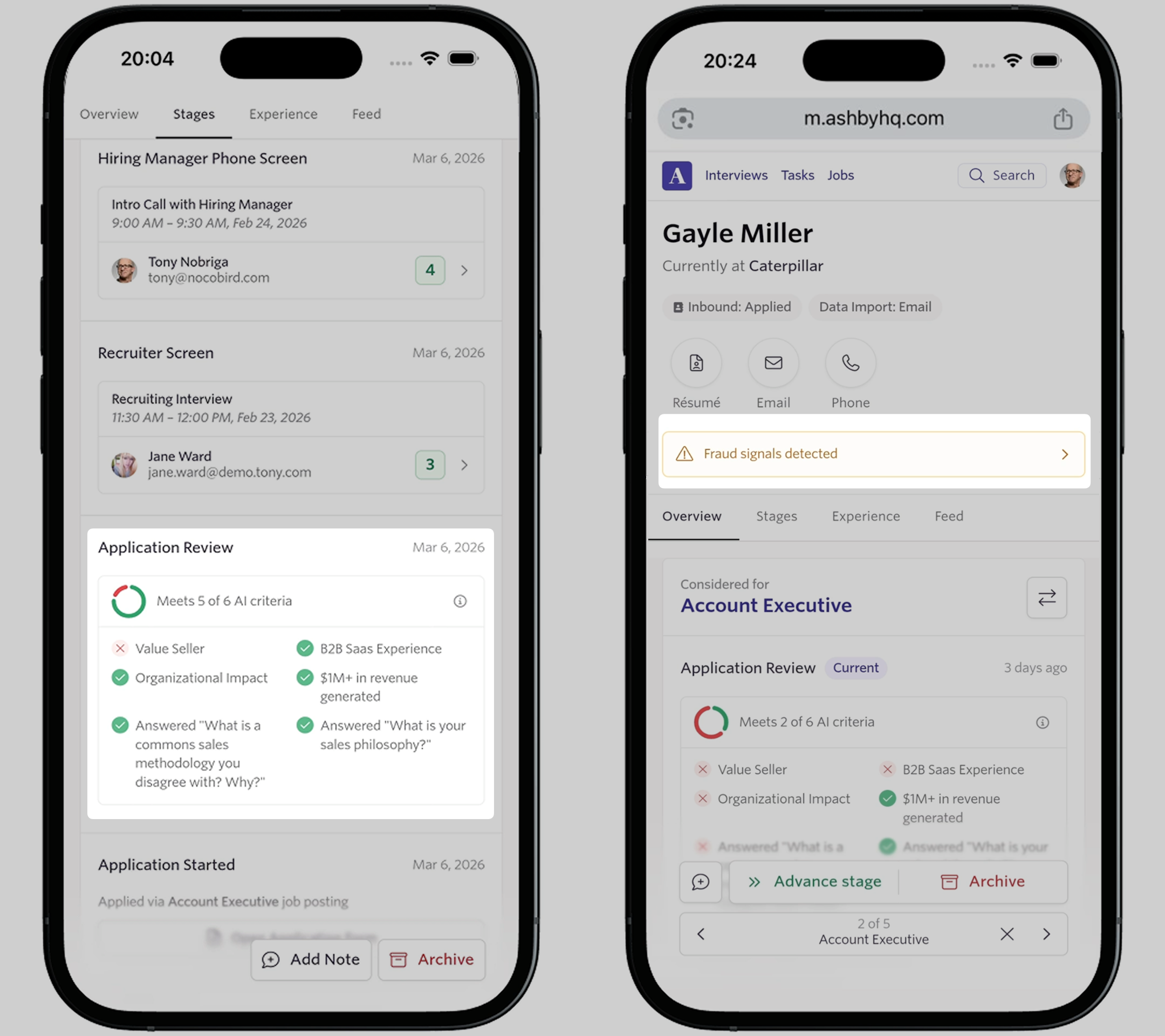 You can now view important data points like AI criteria evaluations and Fraud signals from the candidate profile.