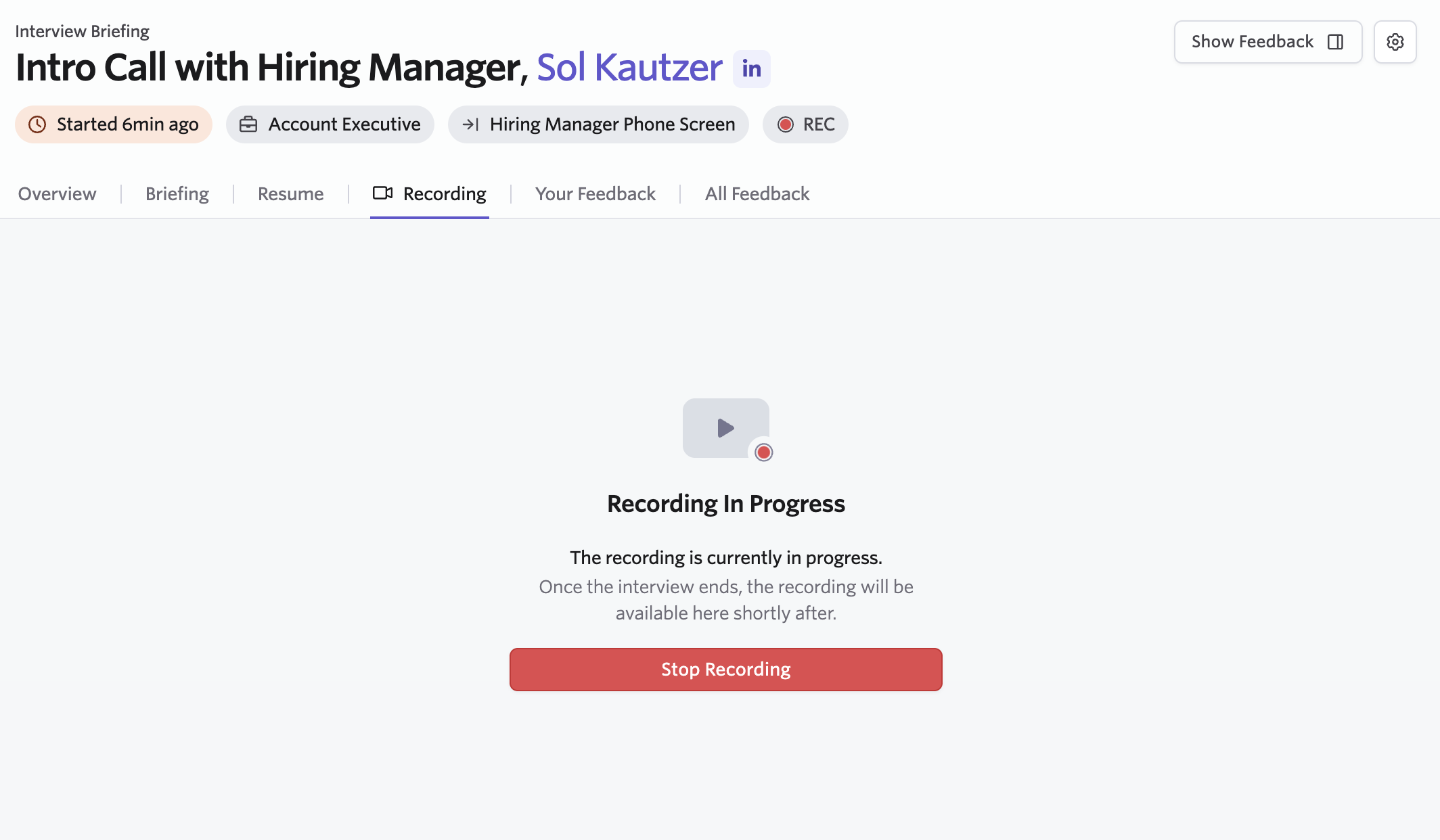 We've added a "Stop Recording" button to interview briefs, used to manually stop the AI Notetaker recording.