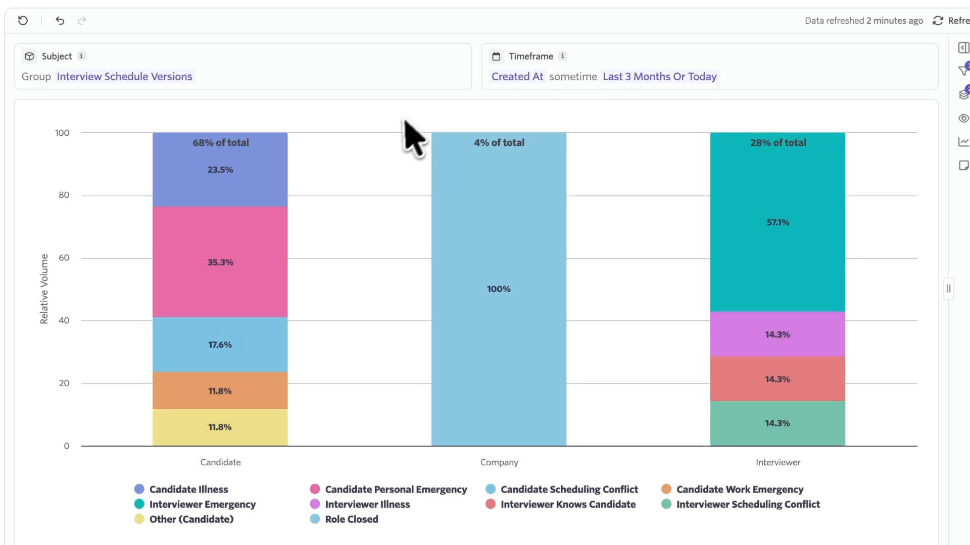 - What percentage of reschedules are candidate-driven vs. interviewer-driven?