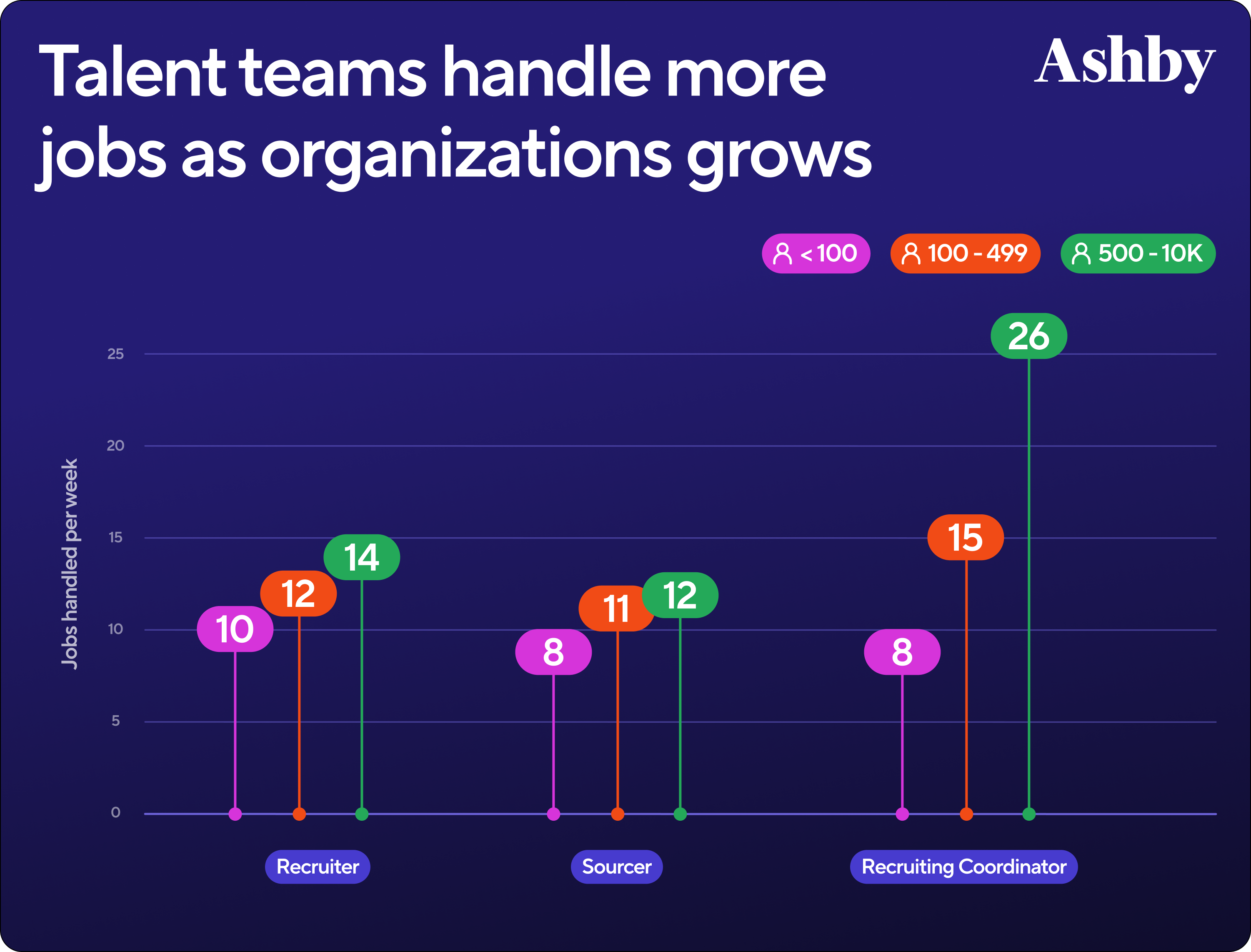 1. As companies grow, their talent teams handle more jobs in parallel.